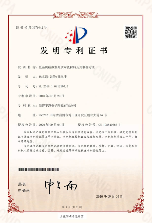 公司名稱:淄博宇海電子陶瓷有限公司